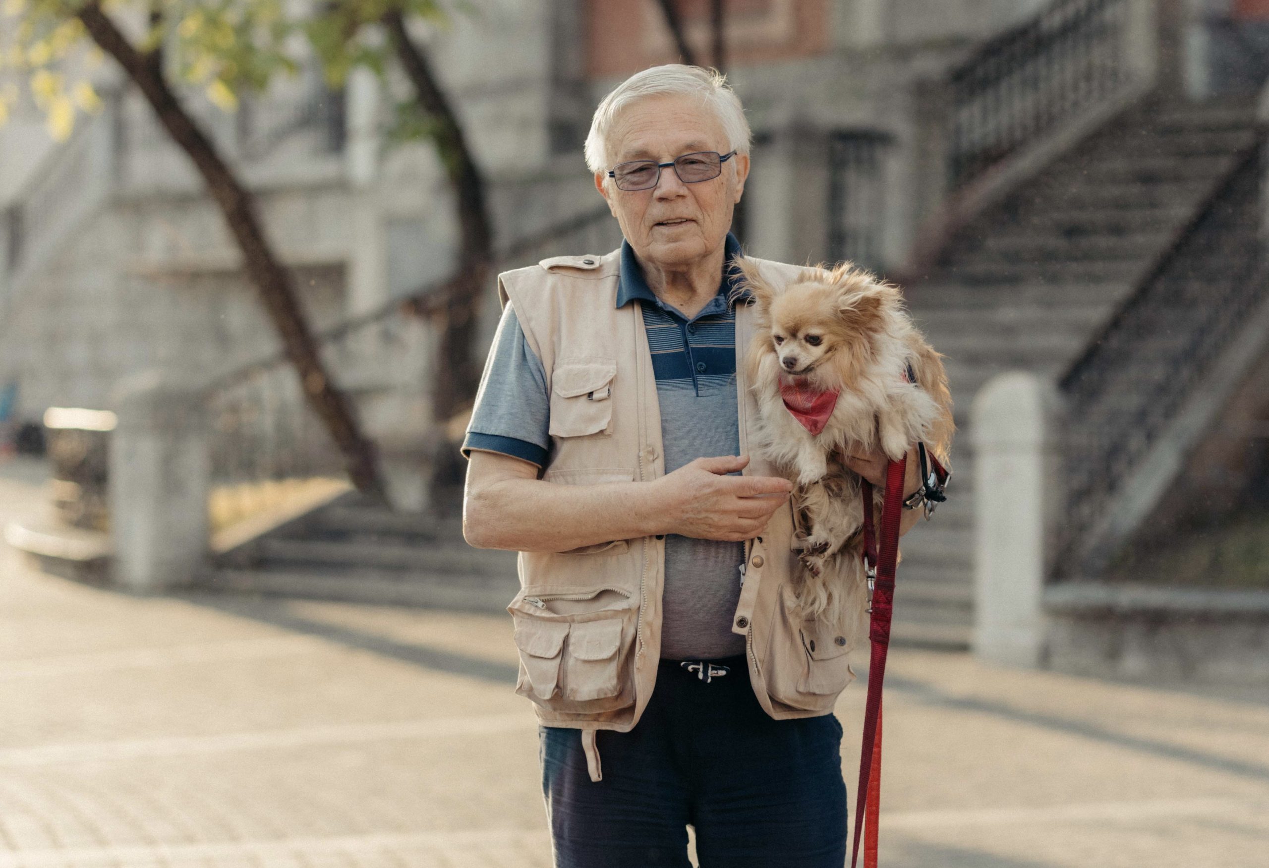 Izpostavil bi Matjaža. Bil sem v središču mesta, kjer je čudovita svetloba prodirala skozi ulico. Obožujem ljudi in občutek imam, da so veliko doživeli in nosijo številne zgodbe. Modri so – in to me zanima. Pogosto jih sprašujem o njihovih letih, saj imajo vedno kaj modrega povedati. Vidim Matjaža, kako hodi s svojimi psi, in takoj mi pade v oči. Imel je karakter, bil je preživet, imel je zgodbo, ki sem jo lahko začutil. Imel je tudi dva čudovita psa in ko sem se mu približal, mu je eden od psov pobegnil in izpustil je povodec. Tako sem mu moral pomagati in imeti kratek pogovor ter ga prositi, ali mu lahko naredim portret. Imela sva kratko interakcijo in občutek je bil zelo pristen. Jezikovna ovira je bila zahtevna, a hkrati čudovita. Pobožal sem njegova terapevtska psa, malo sva poklepetala in ustvaril sem njegov portret v najlepši svetlobi. Nastal je okoljski portret in povsem naraven trenutek, ko mu je pes dal taco – zame je to bil izjemen moment za fotografiranje.
